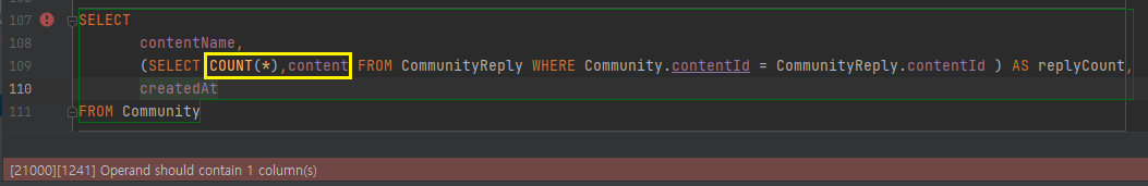 Operand should contain 1 column(s)라는라는 에러가 발생합니다.