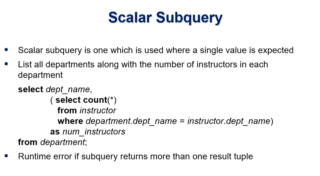 Scalar Subquery는 해당하는 값이 존재하지 않을 경우 null을 반환합니다.