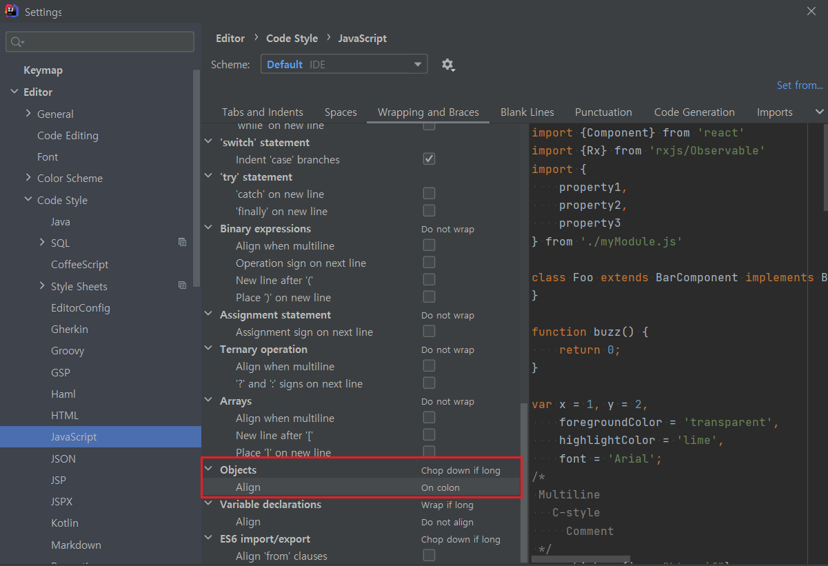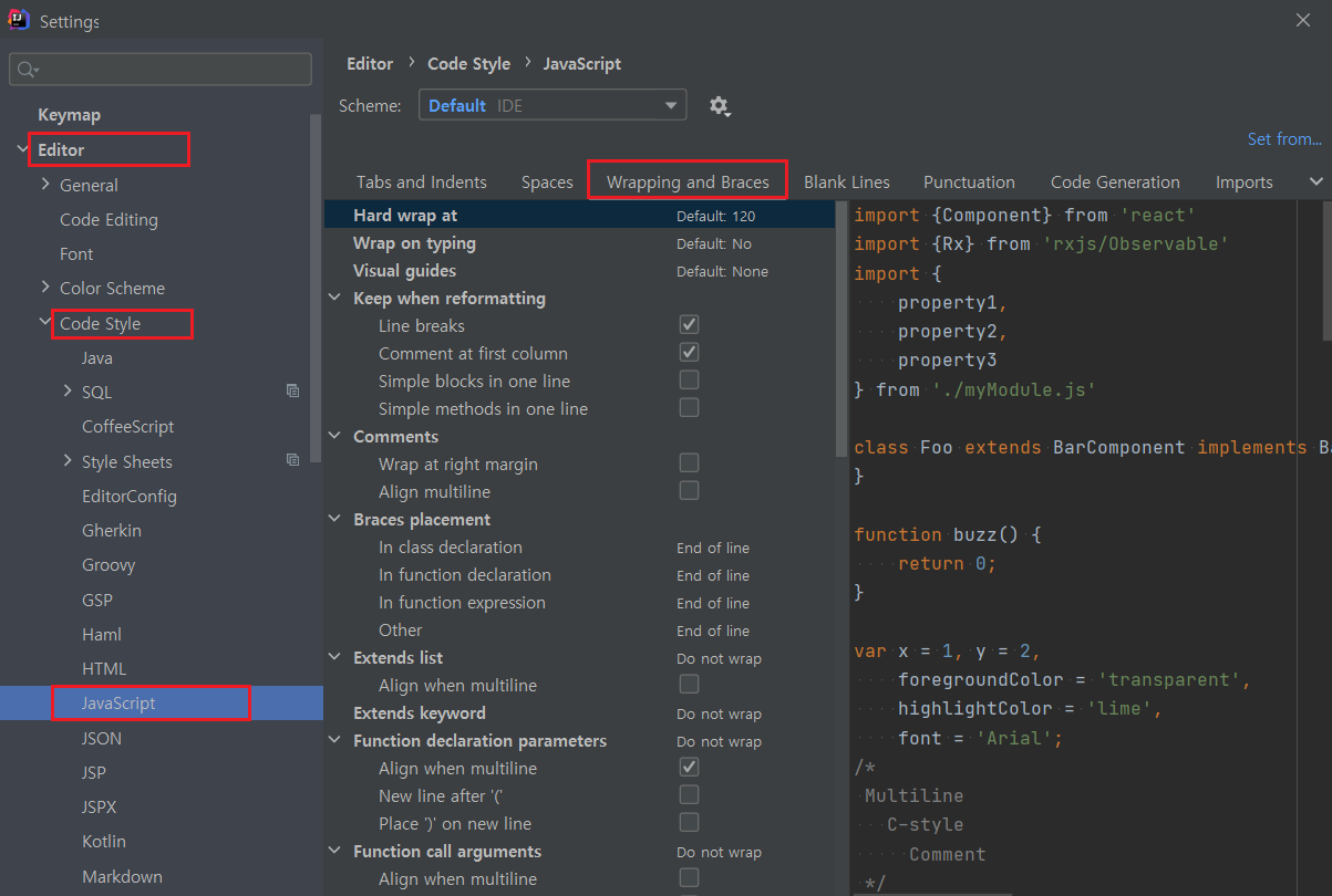Code Style - 언어 선택 - Wrapping and Braces