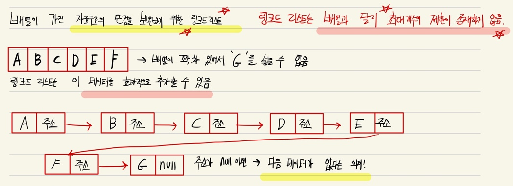 ๋ฐฐ์ด์ด ๊ฐ์ง ์๋ฃ๊ตฌ์กฐ์ ๋จ์ ์ ๋ณด์ํ๊ธฐ ์ํ ์๋ฃ๊ตฌ์กฐ๊ฐ Linked List์ ๋๋ค.