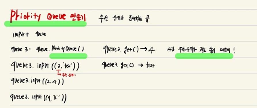 PrioiryQueue : ๋ฐ์ดํฐ๋ง๋ค ์ฐ์ ์์๋ฅผ ๋ฃ์ด์ ์ฐ์ ์์๊ฐ ๋์ ์์ผ๋ก ์ถ๋ ฅ๋๋ Queue