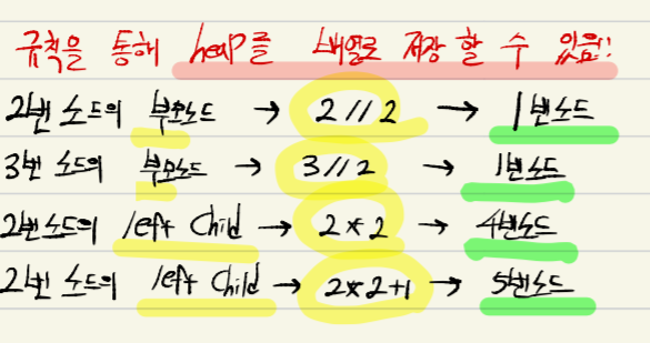 ๊ท์น์ ํตํด์ heap์ ๋ฐฐ์ด๋ก ์ ์ฅํ ์ ์์ต๋๋ค.