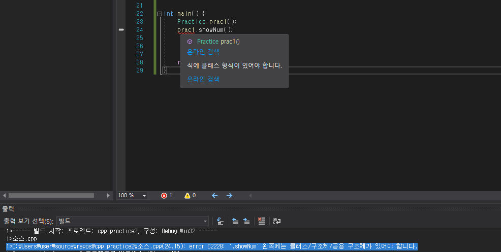 C++ Error ) 식에 클래스 형식이 있어야 합니다, error C2288 , 디폴트 생성자 관련 실수 본문