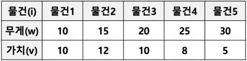 ๊ฐ ๋ฌผ๊ฑด์ ๋ฌด๊ฒ w์ ๊ฐ์น v๋ก ํํ๋ ์ ์์ต๋๋ค.