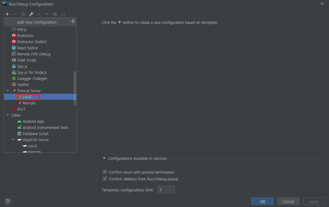 Configure을 통해 다운로드한 Tomcat의 위치를 지정해 줍니다.