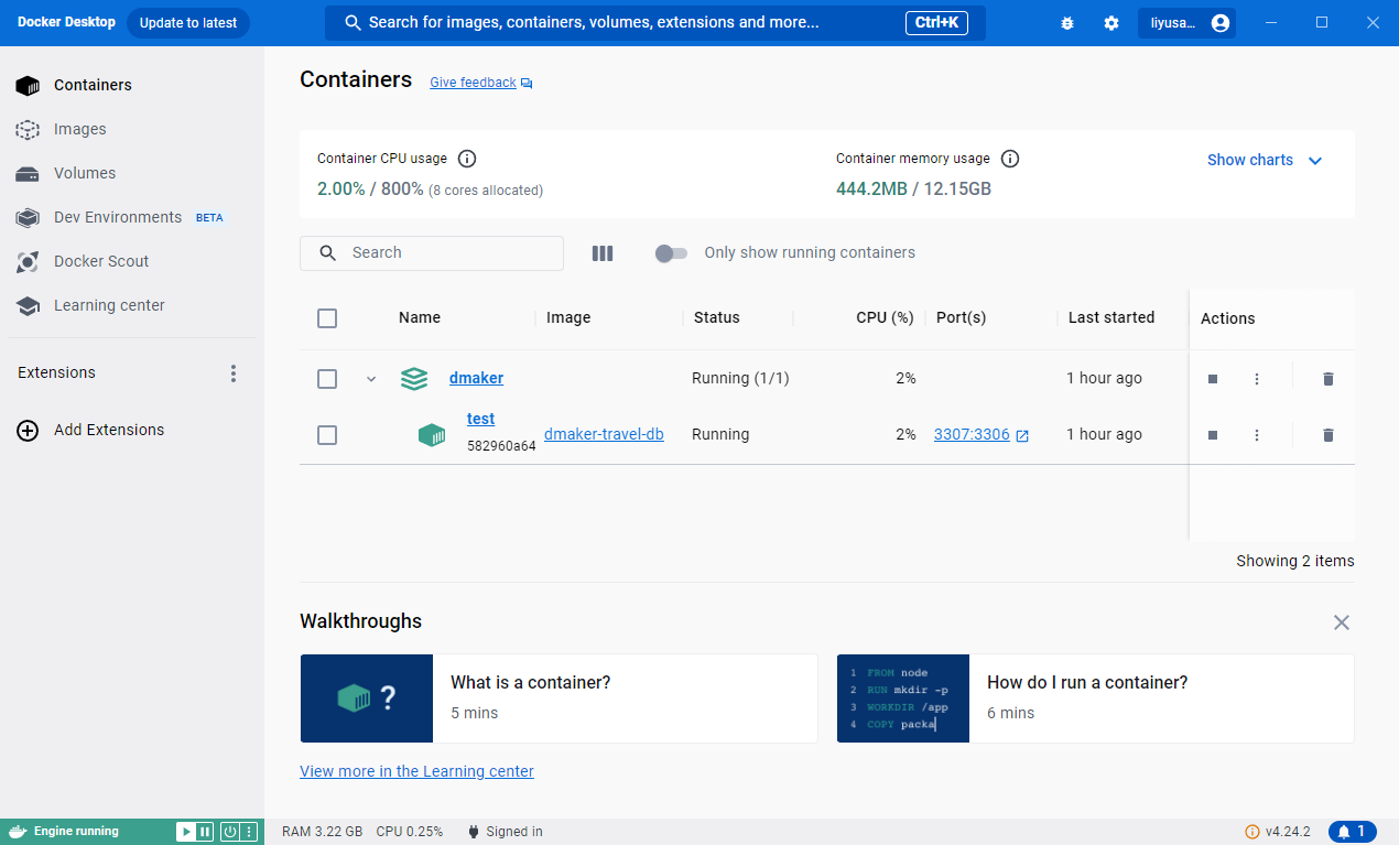 docker-compose.ym 실행 -> 컨테이너가 잘 생성된 모습