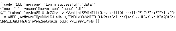 로그인 성공 시 발급받은 JWT를 확인할 수 있습니다.