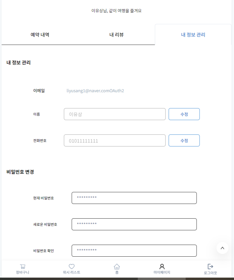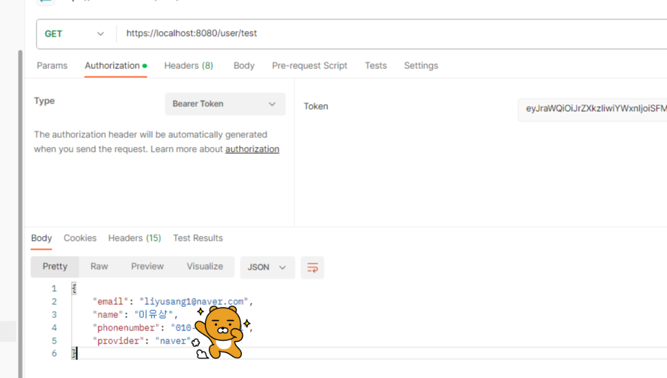 내 정보 조회를 하면 네이버 OAuth로 로그인한 정보가 확인 가능하네요.