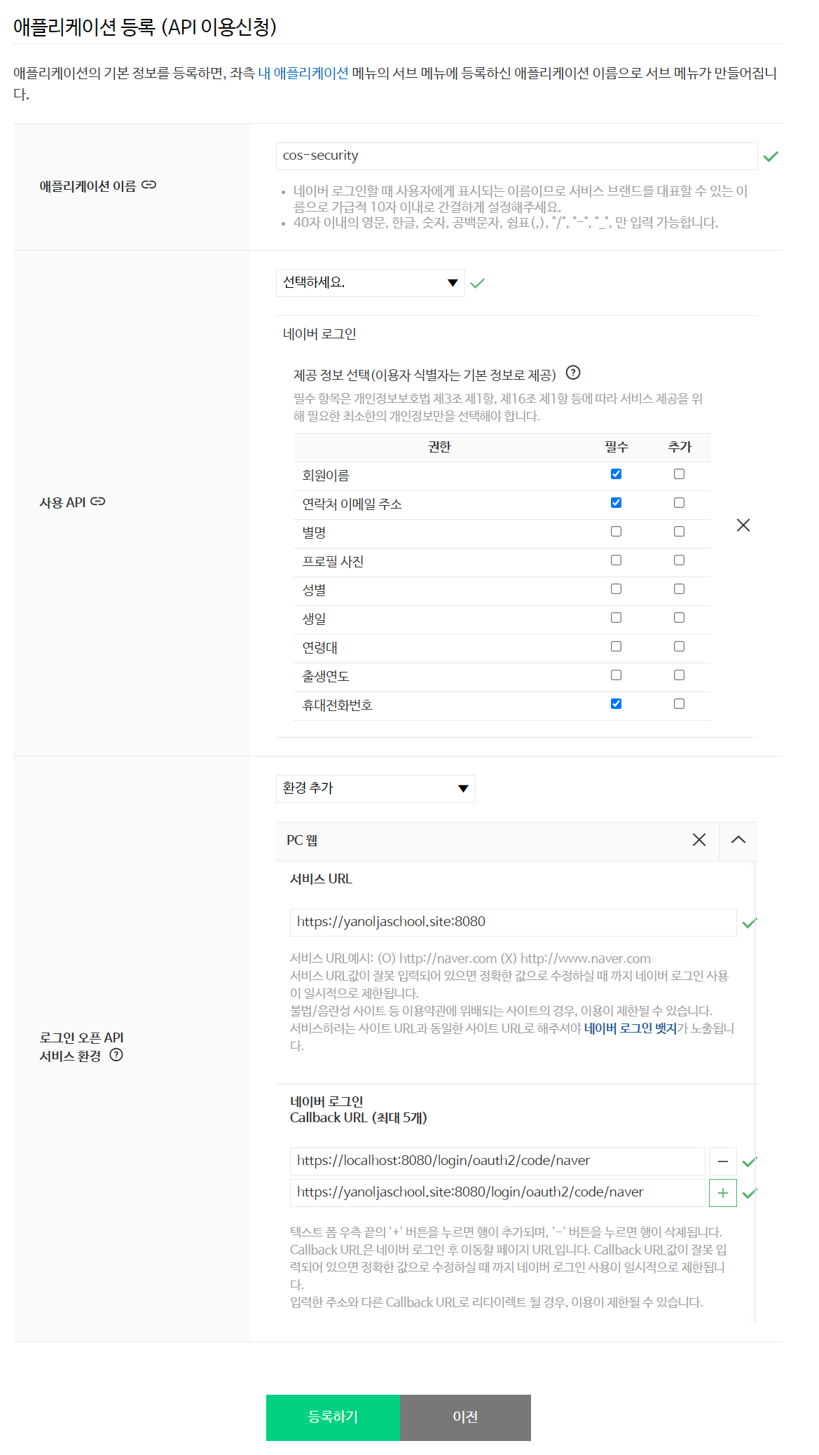 배포 시에는 OAuth2로 네이버 로그인을 할 경우
