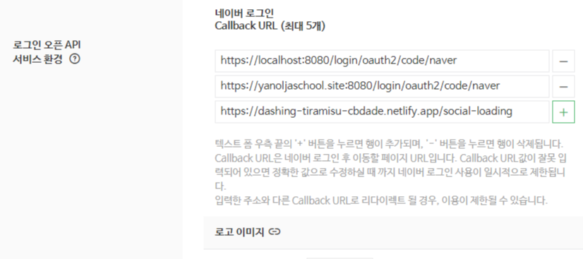 배포된 도메인도 같이 네이버 로그인 애플리케이션을 등록할 때 같이 입력해야지
