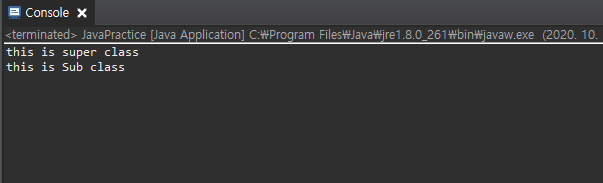 super라는 상위클래스가 있고 sub이라는 하위 클래스가 있습니다.