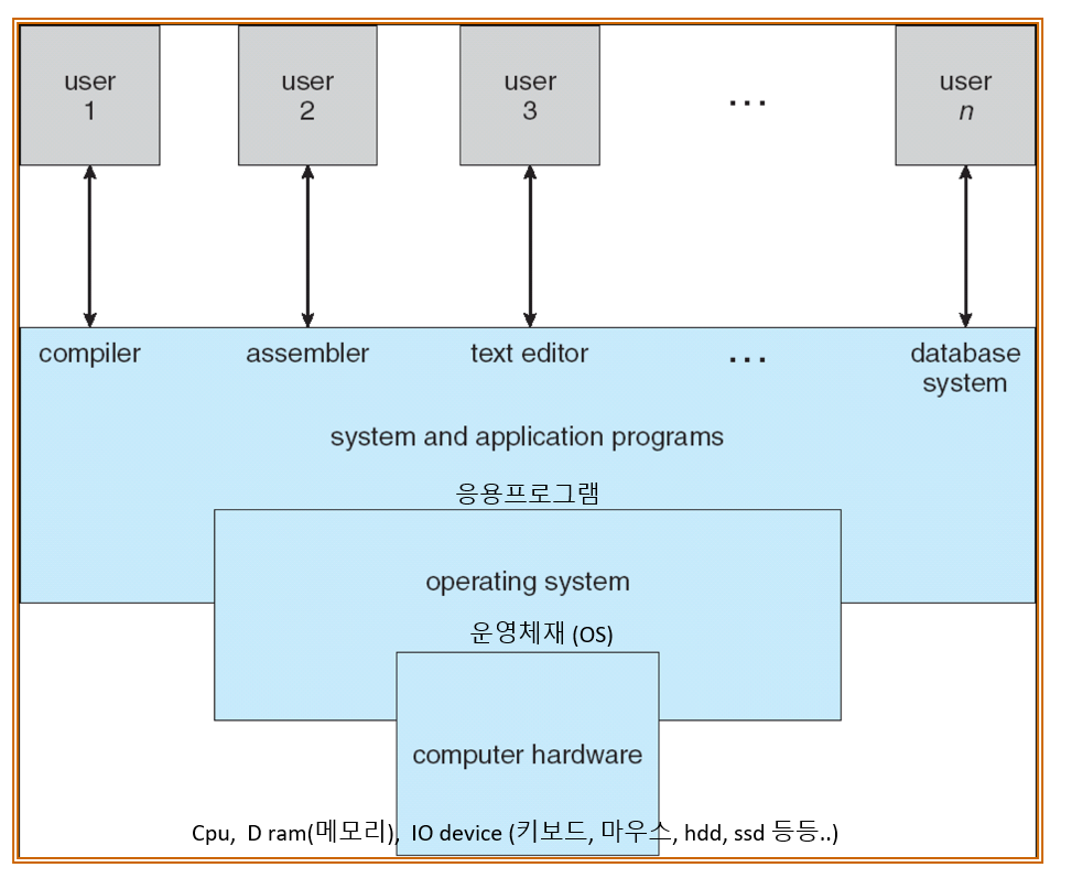 컴퓨터 시스템의 구조는 위의 그림처럼 크게 4가지로 나누어 볼 수 있습니다!
