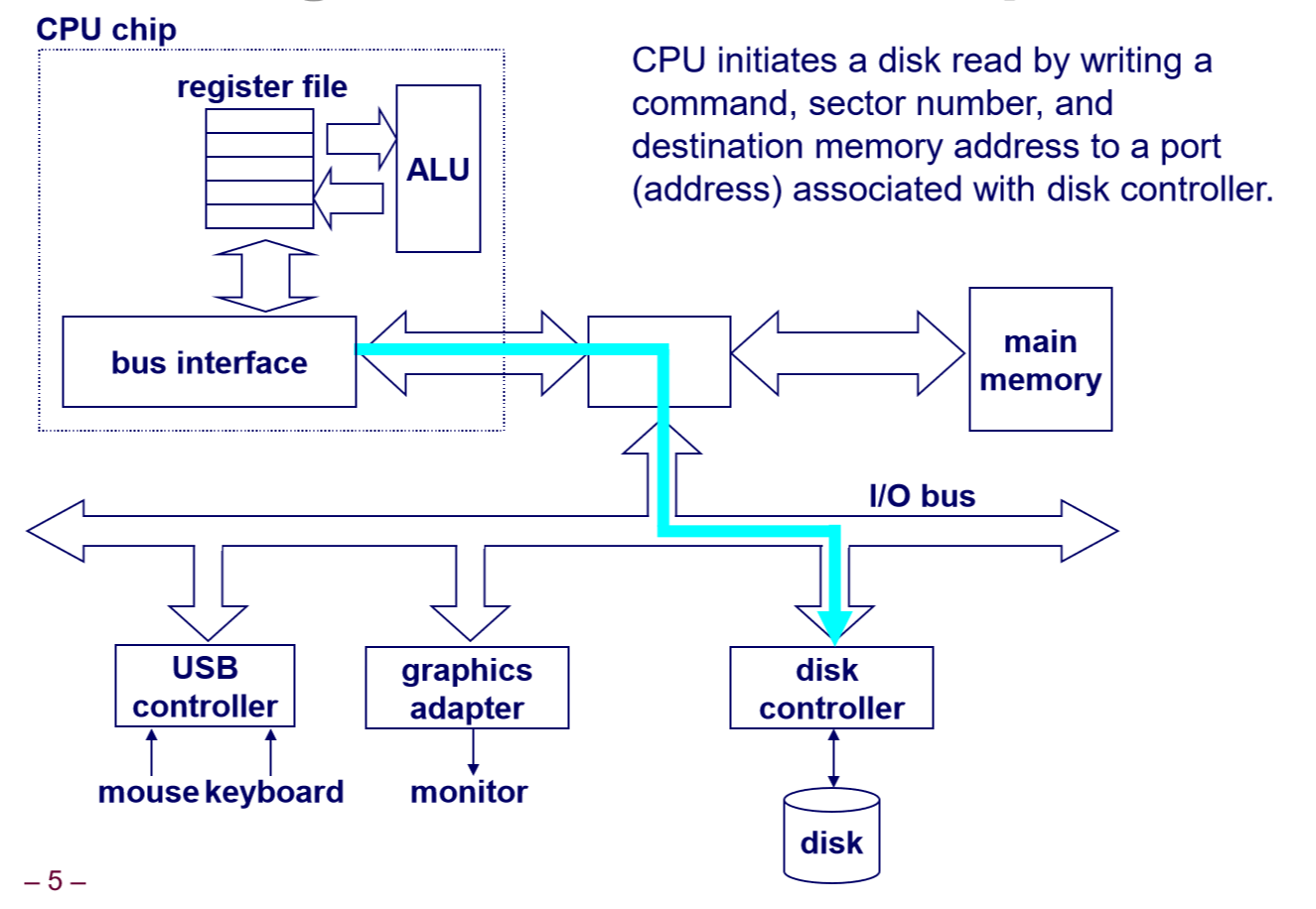 이렇게 disk controller의 interrupt를 받은 CPU는 메모리상에 있는 데이터를 읽게 됩니다.
