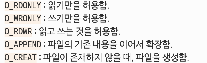 세 번째 인자로는 파일의 접근 권한을 받습니다.