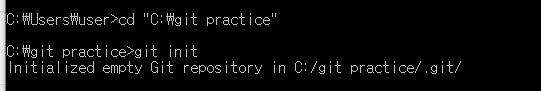 명령 프롬프트를 실행 후 cd 명령어로 커밋을 하고자 하는 폴더로 이동한 후,