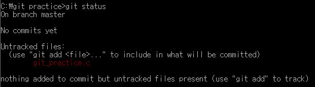 이 상태에서 git status 명령어를 명령 프롬프트에 입력해 봅시다.