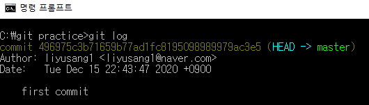 git log명령어를 통해서 커밋 메시지들의 기록들을 확인해 봅시다.