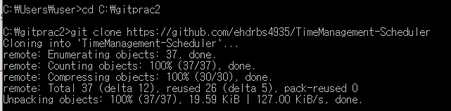 우리는 다시 명령 프롬프트로 돌아와서 git init명령어를 실행한 폴더로 이동한 후