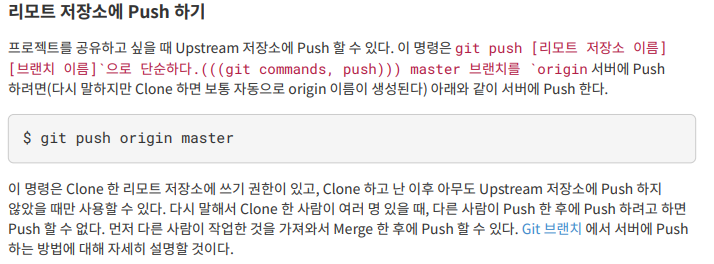 origin은 원격 저장소 이름이고 master는 현재 사용하고 있는 브랜치의 이름입니다.