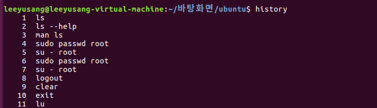 histroy : 이전에 실행한 명령어를 모두 보여줌