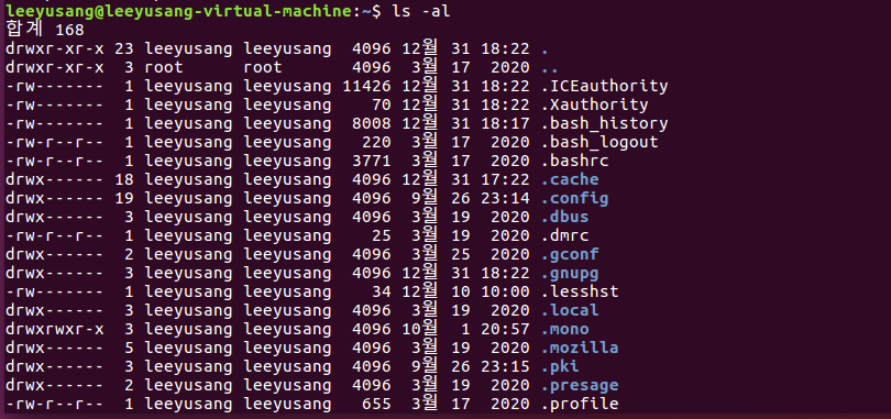ls -al : 위 두 옵션을 한 번에 실행할 수도 있음