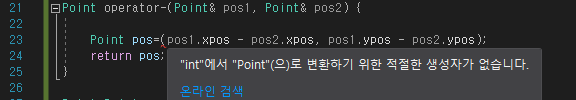 Error ) "int" 에서 "Point" 으로 변환하기 위한 적절한 생성자가 없습니다. 본문