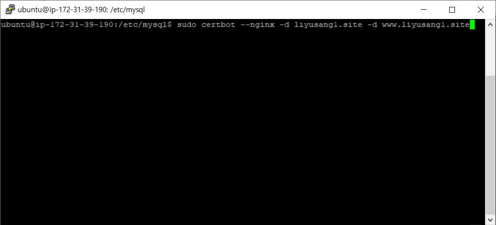 아래와 같은 명령어를 통해서 원하는 도메인을 Nginx 플러그인을 통해 인증서를 얻을 수 있습니다.