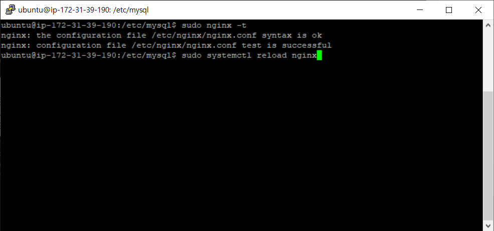 문제가 없으면 Nginx를 다시 로드해 줍니다.