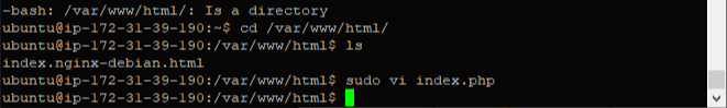 아래와 같이 명령어를 입력해서 index.php라는 php 파일을 만들어 줍시다.