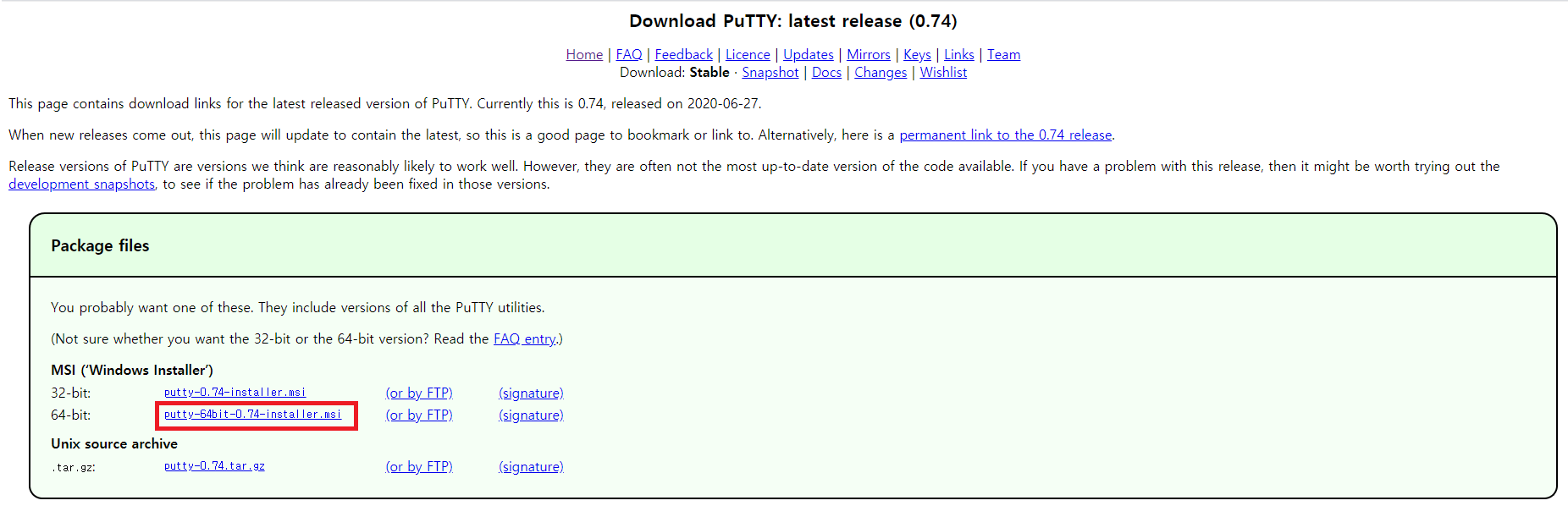 아래의 링크에서 PuTTY를 설치해 줍시다.