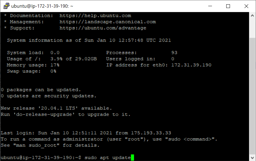 사용자 이름은 ubuntu일 경우 ubuntu이기 때문에 이를 입력해 주면 됩니다.