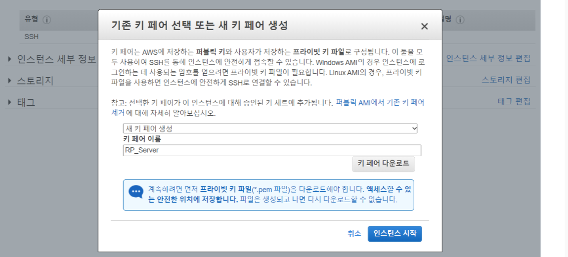 새 키 페어를 생성하고 다운로드를 해 줍시다.