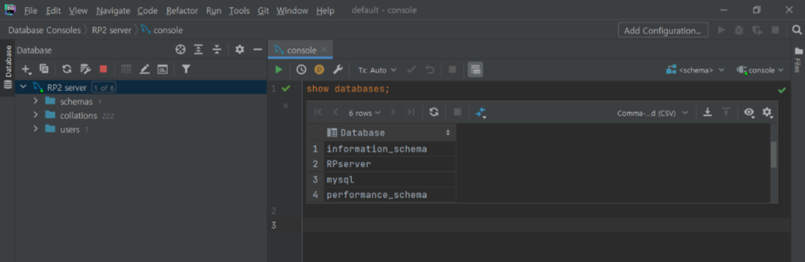 아래와 같이 성공적으로 Data grip과 MYSQL이 연결되는 것을 볼 수 있습니다.