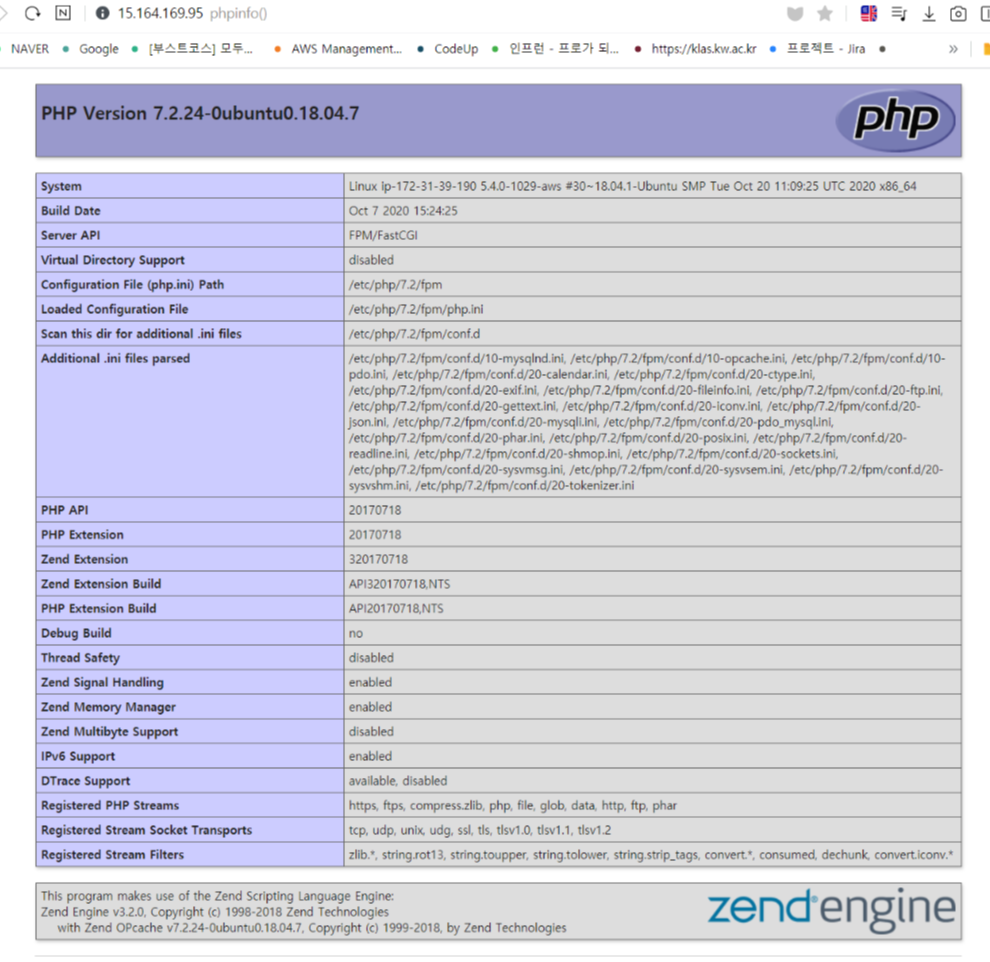 이제 AWS의 퍼블릭 IPv4 주소/index.php를 입력하게 되면 아래와 같이 화면이 출력됩니다.