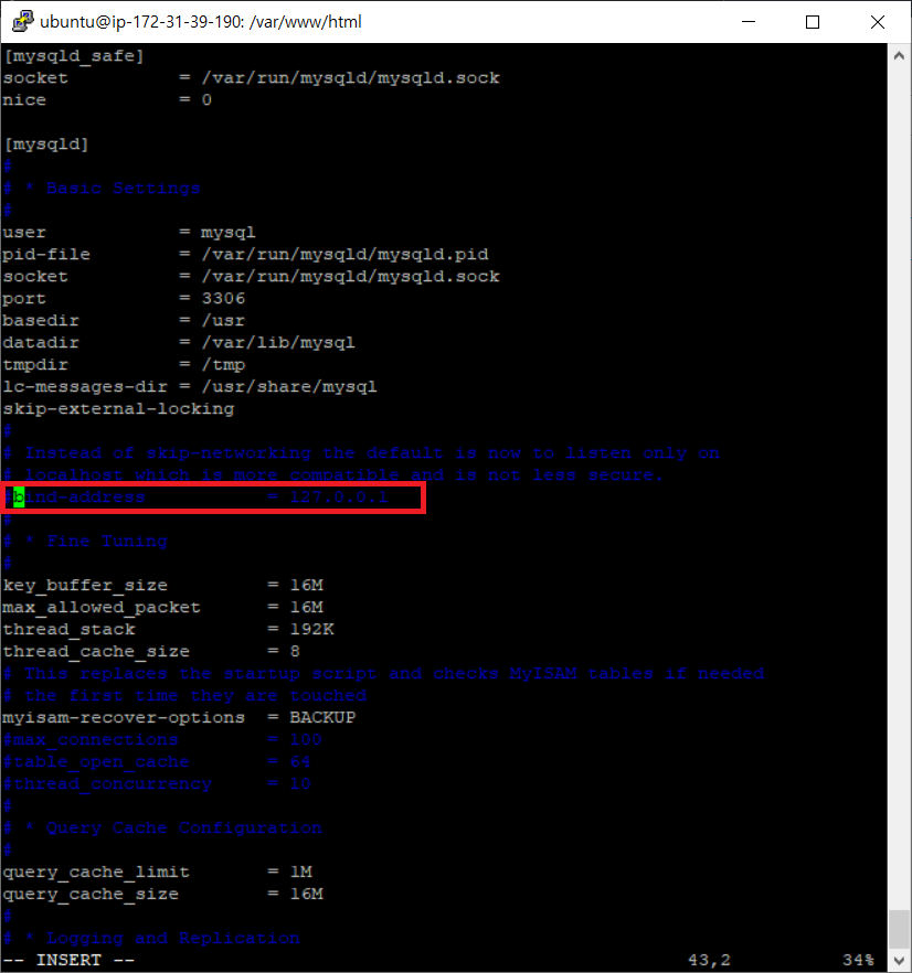 아래와 같이 명령어를 입력한 후 bind-address 부분을 주석 처리해줍시다.
