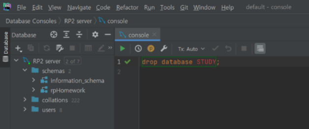 명령어를 실행하고 schemas에 보면 원래 있었던 STUDY라는 데이터베이스가 삭제된 것을 볼 수 있습니다.