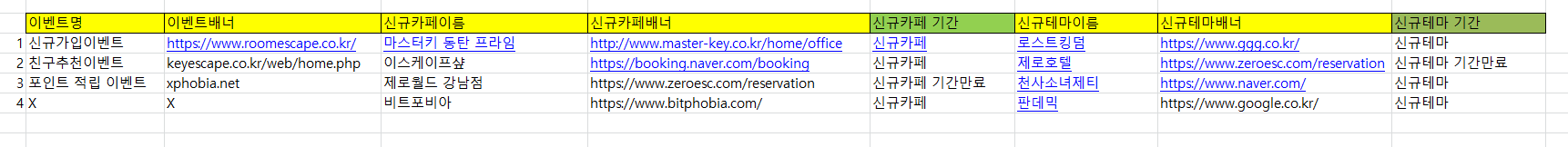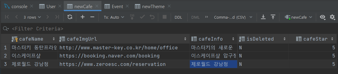 Join 문을 활용하여 Evnet테이블과 newCafe테이블의 정보를 한 번에 제공하도록 할 수 있습니다.