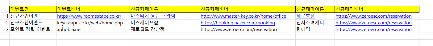 사용자에게 제공해야 할 데이터를 엑셀로 정리해 보았습니다.
