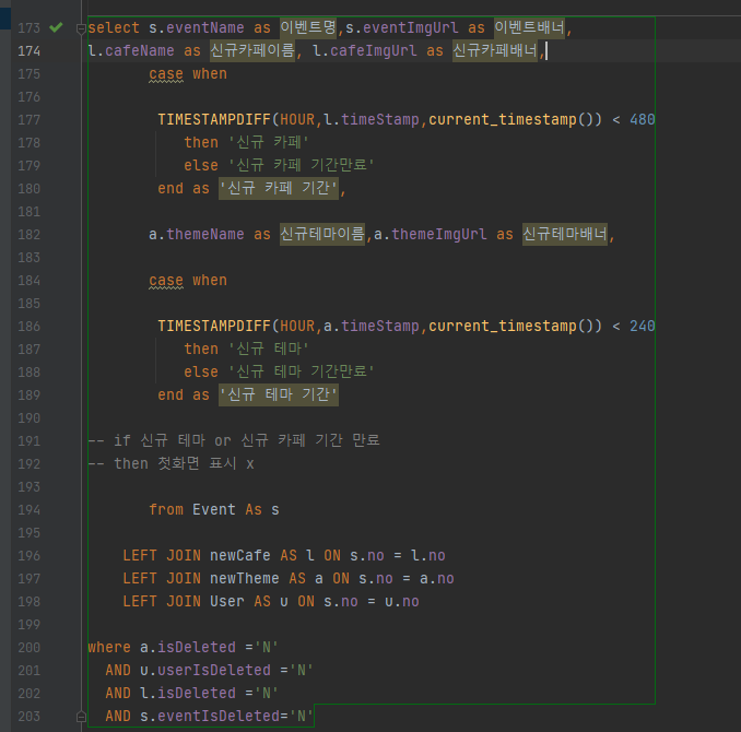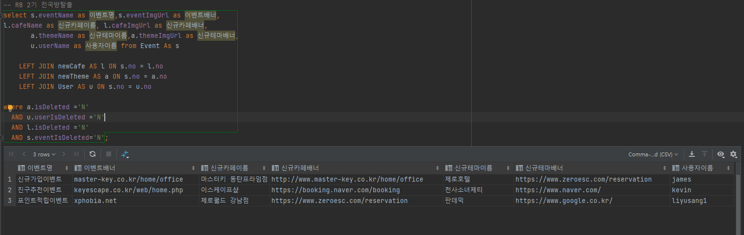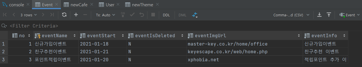 where은 eventIsDeleted = 'N'인 테이블만 표시하겠다는 조건문입니다.