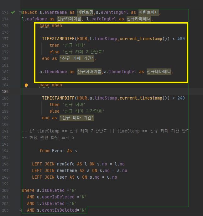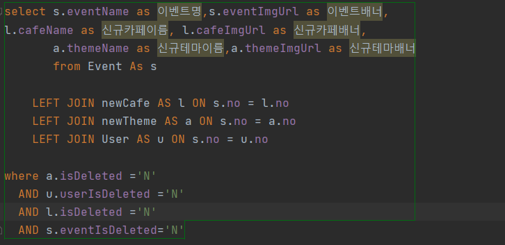 where은 eventIsDeleted = 'N'인 테이블만 표시하겠다는 조건문입니다.