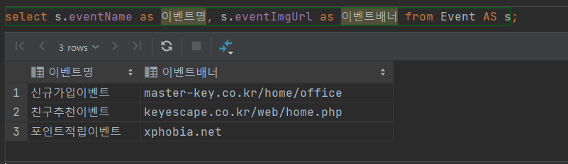 as를 활용해서 Event라는 테이블을 s로 지정하고 보다 간결하게 쿼리를 작성할 수 있습니다.