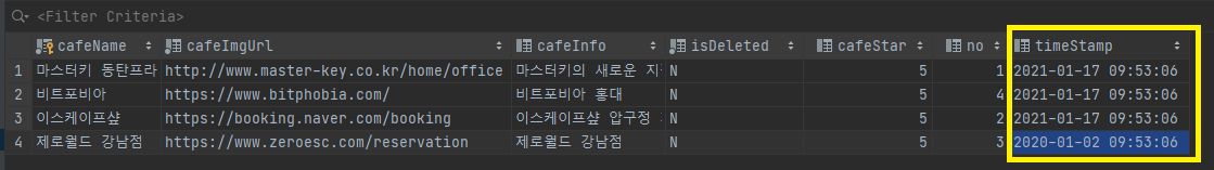 newCafe의(as를 이용해 l이라고 줄임) timeStamp가 현재 시간을 기준으로,