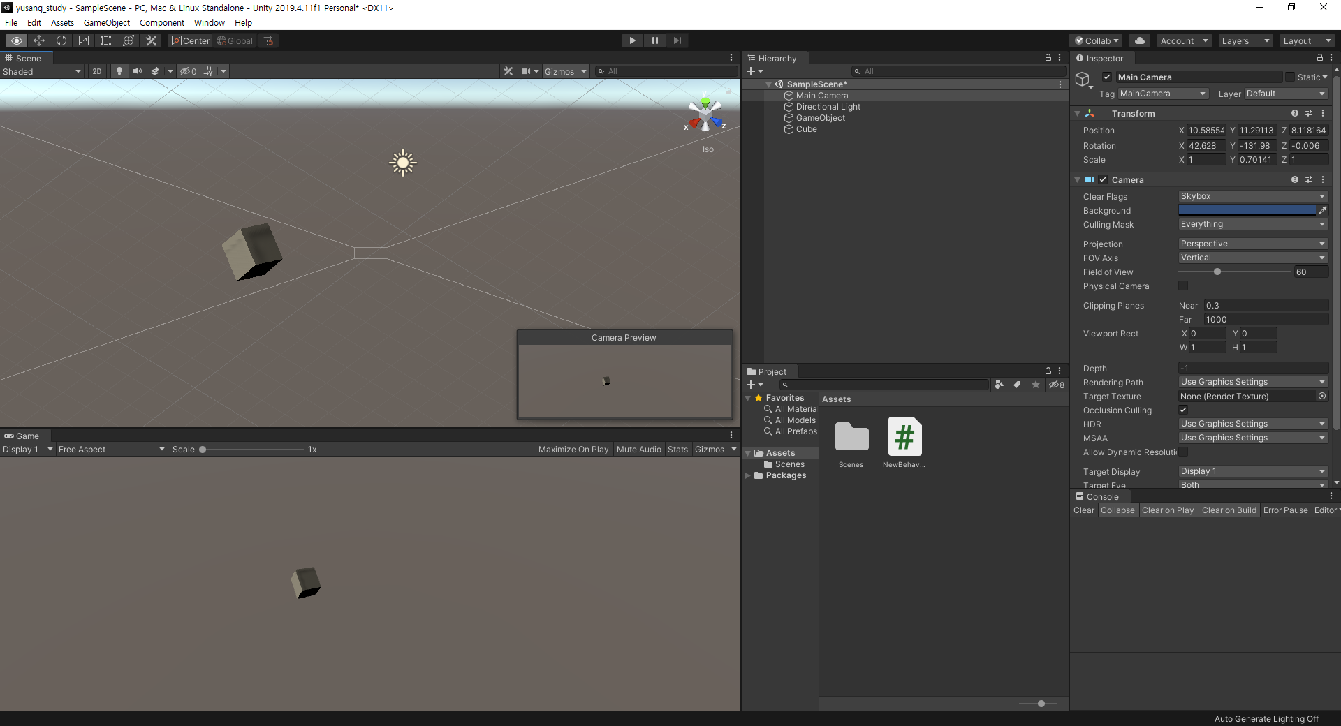 Unity 공부 2 - Unity 카메라와 Game 시선 일치 시키기 Ctrl + Shitf + F 본문