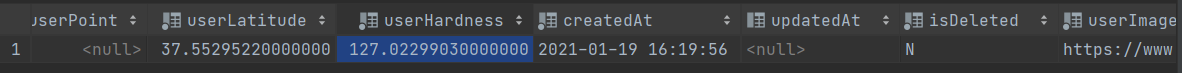 userLatitue 칼럼에 현재 지점 위도를