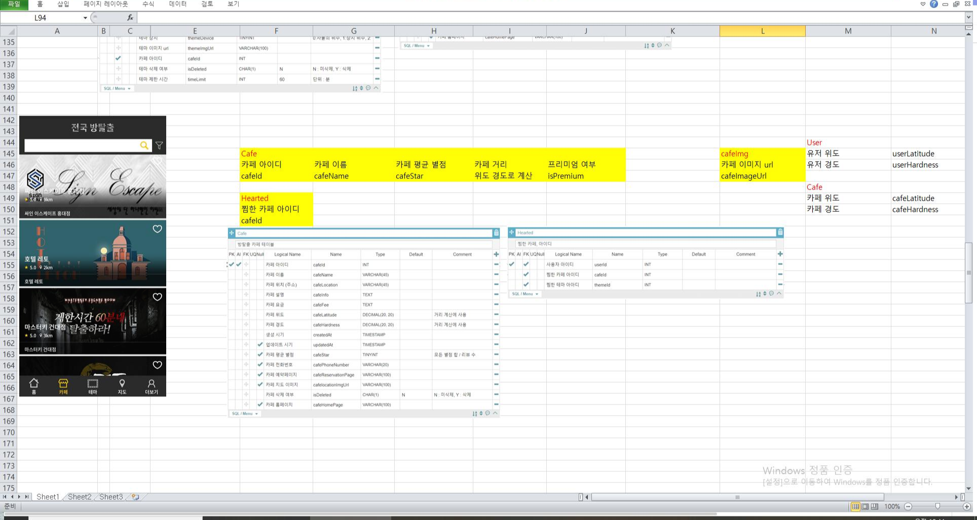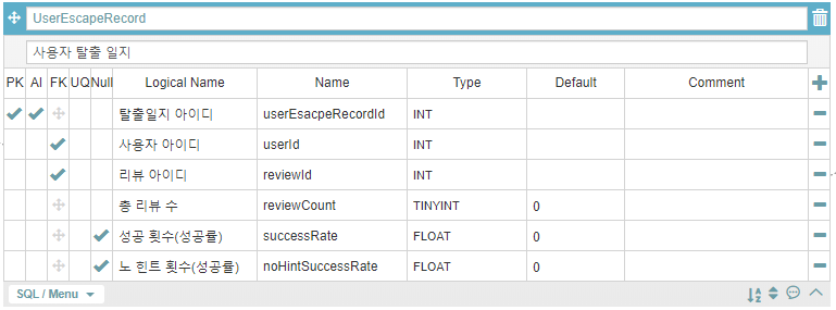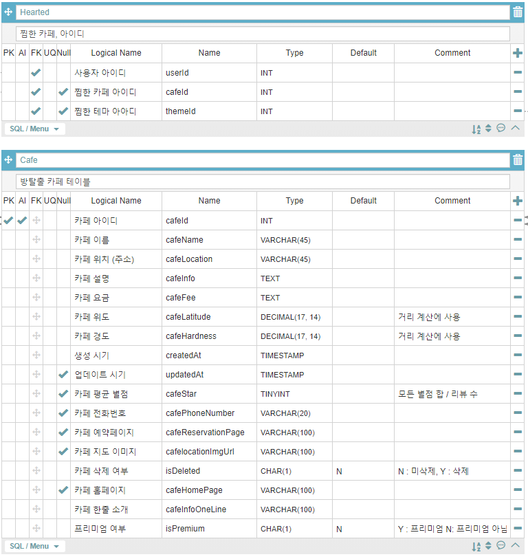 설계한 각각의 table를 자세히 보자면 아래와 같습니다 ~