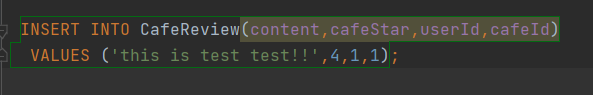 INSERT INTO CafeReview(content,cafeStar,userId,cafeId)