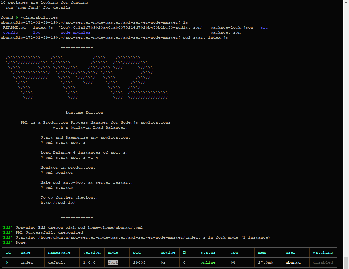 pm2 start index.js를 통해 pm2 인스턴스를 실행시킬 수 있습니다. (파일이 있는 경로로 이동해서 실행)