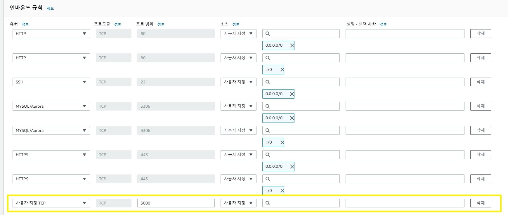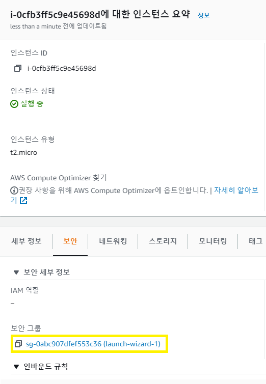 이제 AWS EC2의 인스턴스의 인바운드 규칙을 편집해 줍시다.