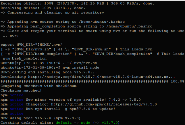 노드 설치는 현재 EC2 세션에만 적용됩니다. EC2 인스턴스가 사라지면 노드를 다시 설치해야 합니다. 다음 단원에 설명된 대로 유지하려는 구성이 있는 경우 대안은 EC2 인스턴스의 AMI를 만드는 것