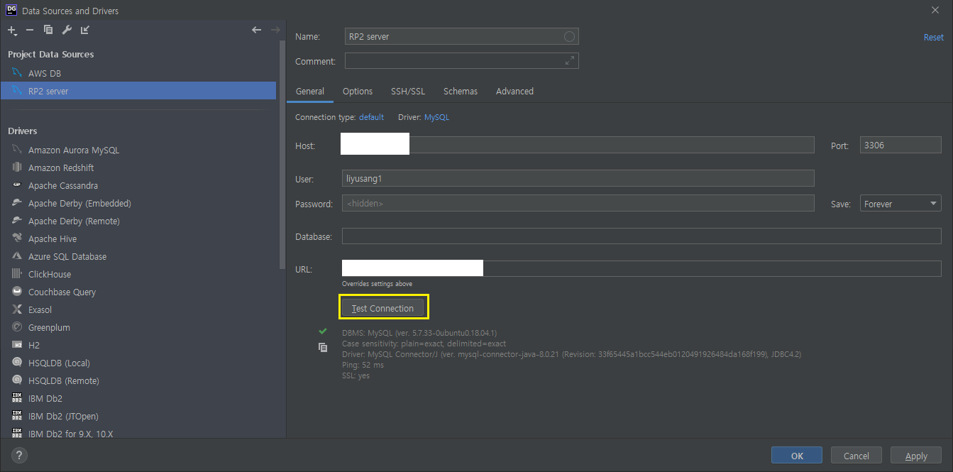 Test Connection확인 후 실행하면 에러가 해결됩니다!!
